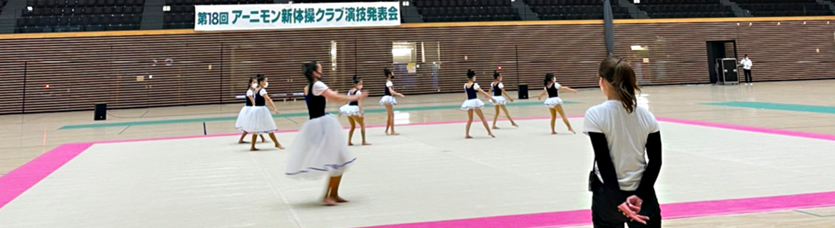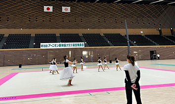 新体操の5種目を使って作品を踊り、年に1回の発表会に出ることを目指していきます